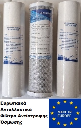 Ανταλλακτικά φίλτρα νερού αντίστροφης όσμωσης 3 σταδίων με αντιβακτηριακό Post Carbon Filter ( 3ων τεμαχίων ).