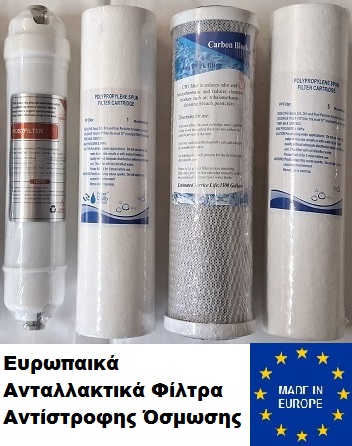 Ανταλλακτικά φίλτρα νερού αντίστροφης όσμωσης 4 σταδίων με αντιβακτηριακό Post Carbon Filter ( 4ων τεμαχίων ).